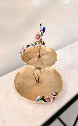 دیس دو طبقه برنجی | مدل چکش ریز میناناموجود