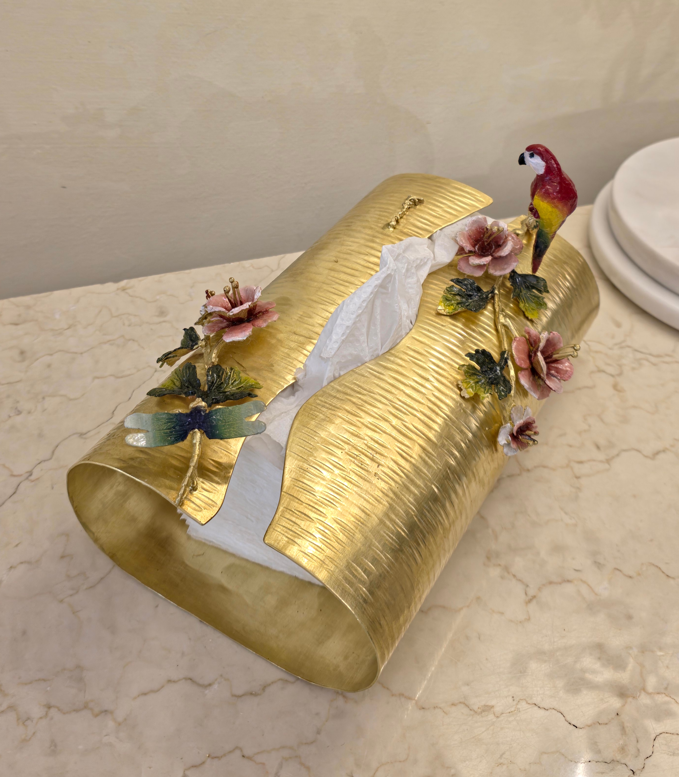 تزئین شده با رسته کار گل های ظریف و طوطی میناکاری
