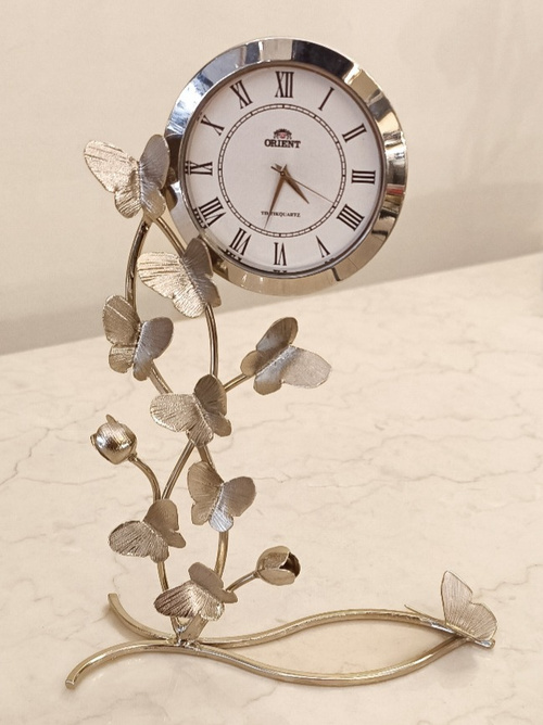 ساعت رومیزی پروانه فانتزی نقره ای