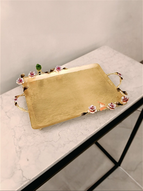 سینی دسته دار مستطیل بزرگ برنجی دکوراتیو