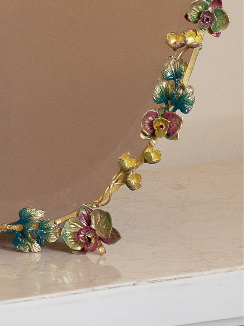 این باغ رنگین و ابدی، آینه بیضیشکل این مجموعه را نیز عاشقانه در آغوش میگیرد. آینه، با بازتابی گرم و رمانتیک (با تهرنگ برنزی)، آماده است تا اولین تصویر «ما» شدن شما را در قابی از هنر ناب و جاودانه ثبت کند. این ست، انتخابی بیرقیب برای درخششی اصیل بر «سفره عقد» و تبدیل شدن به یک میراث هنری در خانه نوی شماست.